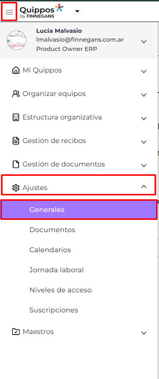 Menú → Ajustes → Generales → Solapa Integraciones