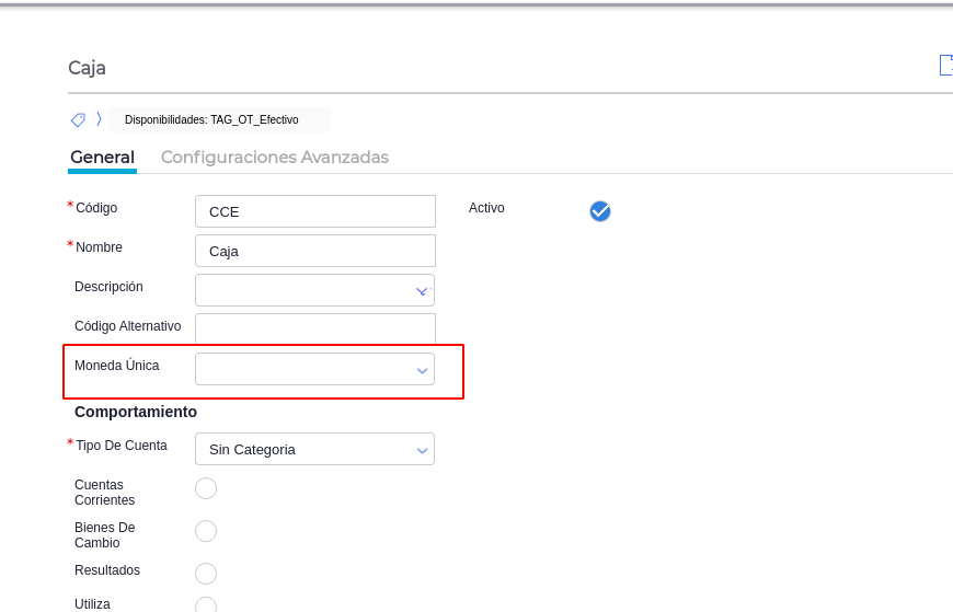 - Dentro de la solapa general–> quitar la moneda única seleccionada y dejar en blanco