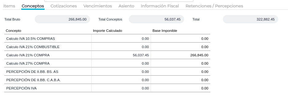 Los conceptos en el BOT de compras se cargan manualmente, como lo explica la siguiente entrada en la base de conocimiento (Factura con 2 productos iguales con distintas tasas de IVA no muestra el “Total Conceptos” en Bot de Compras ), por ende hay que tomar el concepto correcto del producto.