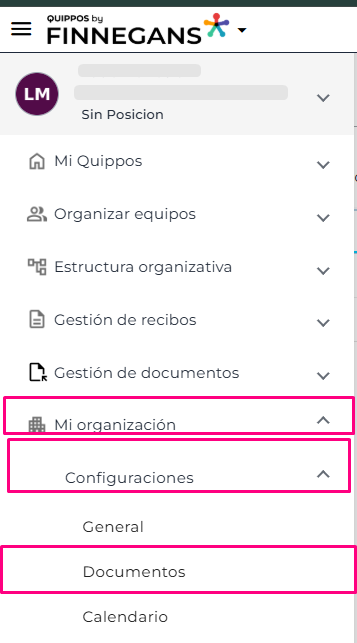 Menú desplegable → Mi organización → Configuraciones → Documentos