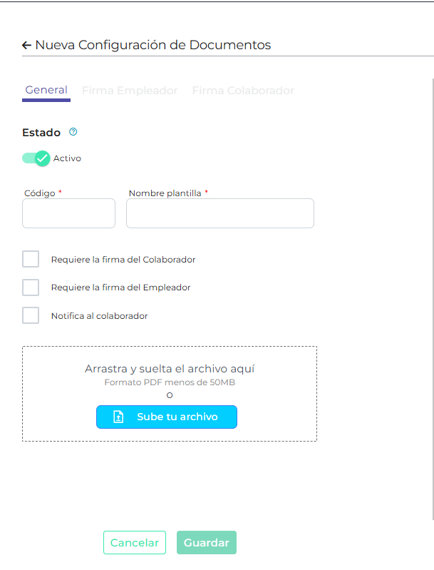 - Documentos generales: pueden requerir firma o no, tanto del colaborador como del empleador.