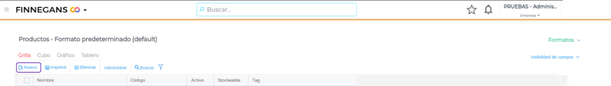 - Nombre: representa el nombre del producto. El mismo se visualiza en los selectores de producto, como así también en diferentes reportes y procesos en donde intervenga.
