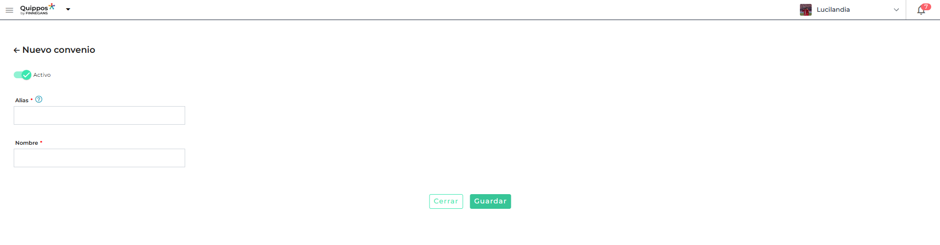 - Alias: Obligatorio. Identificador del convenio. Debe ser único y no contener espacios.