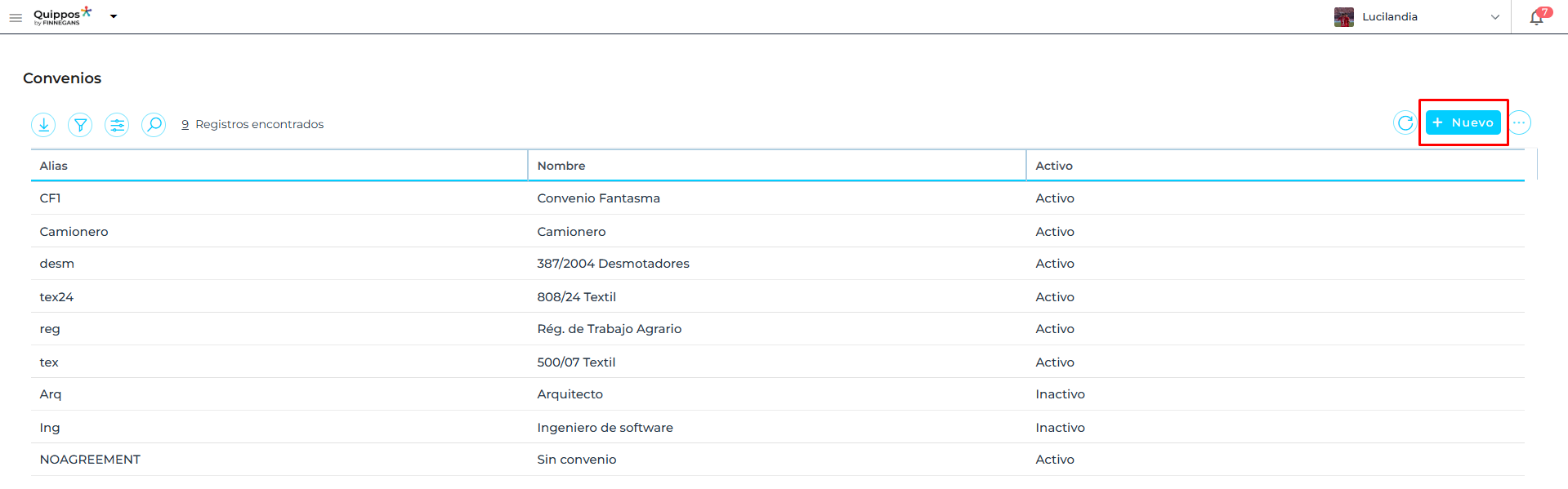 En Quippos, la funcionalidad de Alta de convenios permite a las organizaciones cargar convenios, facilitando la gestión de acuerdos laborales dentro del sistema.