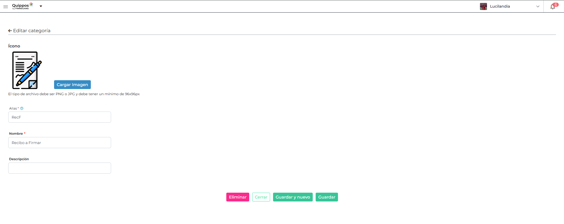 - Imagen/Ícono: permite cargar una imagen desde el escritorio del ordenador (campo opcional). Para poder cargar una imagen se deberá presionar en el botón Cargar imagen