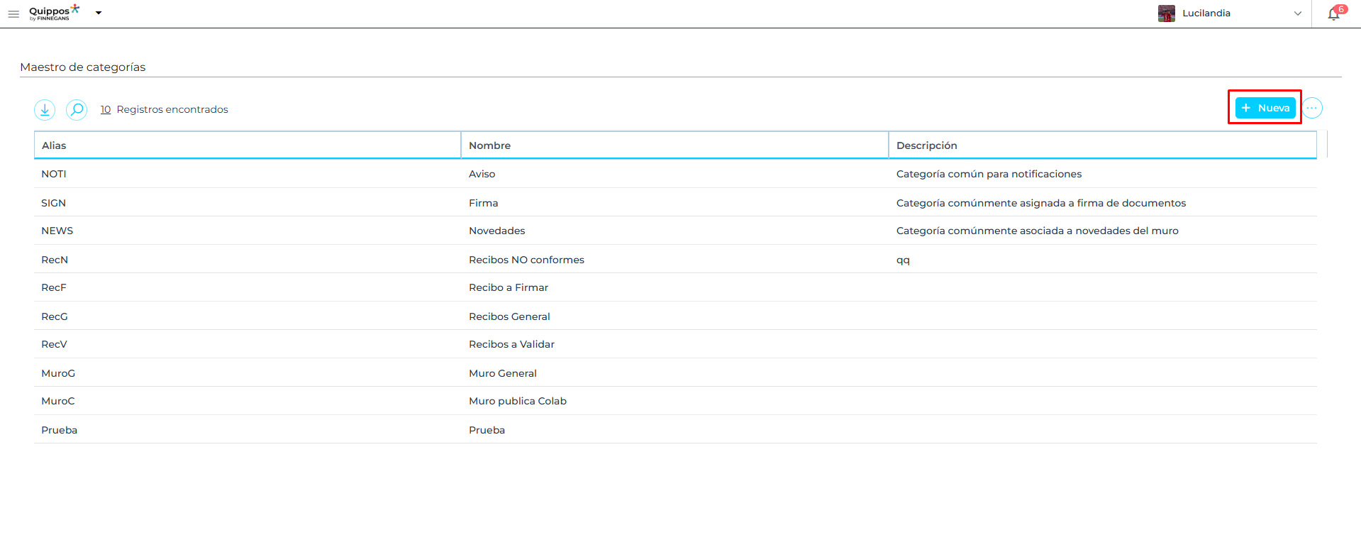 Los tipos de notificación creados quedarán disponibles para ser seleccionados en la configuración de notificaciones de los distintos módulos de Quippos.