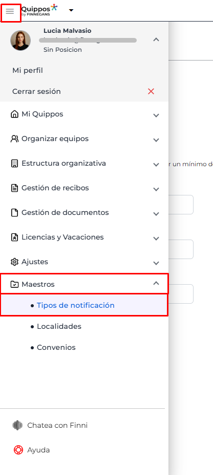 Menú → Maestros → Tipos de notificación