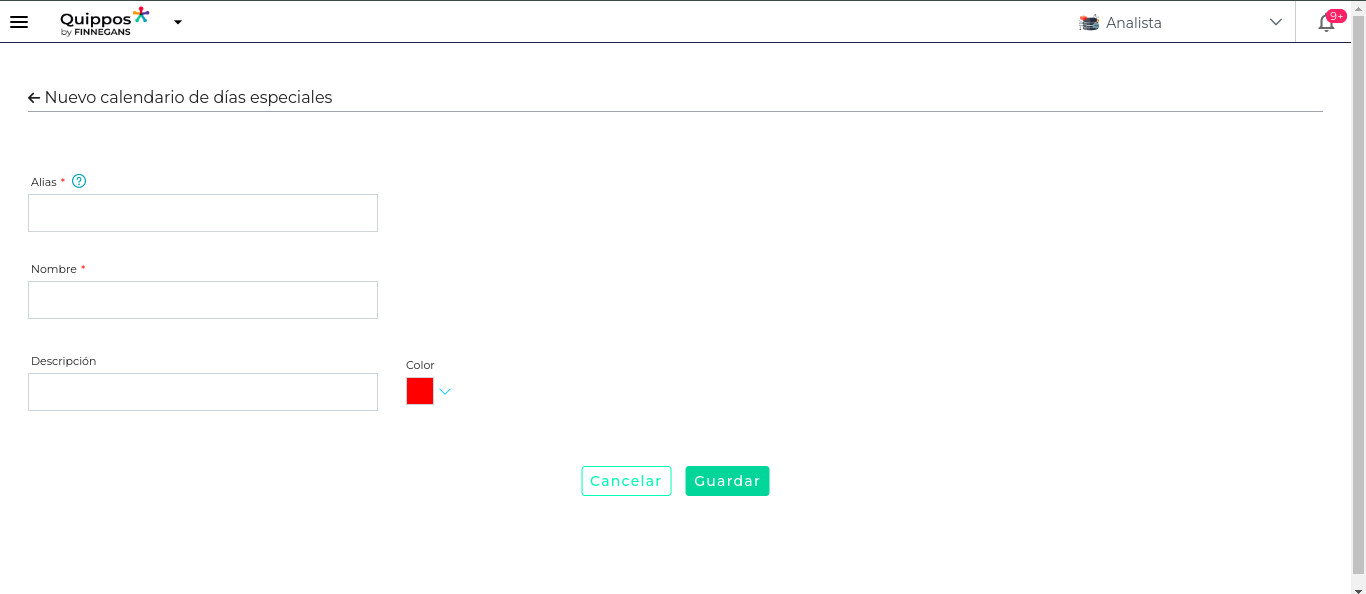 - Color: Se debe seleccionar un color para identificar visualmente el calendario.