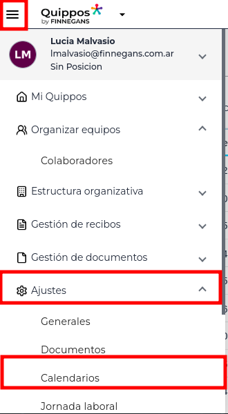 Menú > Ajustes > Calendarios.