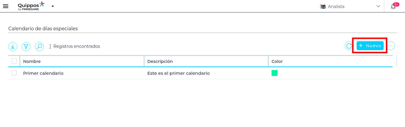 - Presionar el botón “Nuevo” para iniciar la creación de un nuevo calendario.