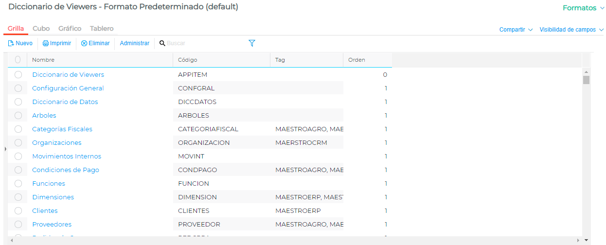 Accedé al diccionario de viewers desde Menú → Configuración → Diseño del Espacio de Trabajo → Diccionarios → Viewers