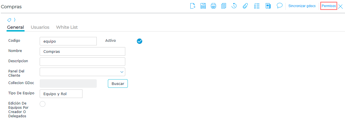 Seleccioná el equipo al que deseás asignarle el permiso de un informe y presioná el botón permisos ubicado en la parte superior derecha.