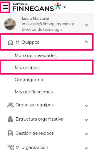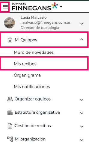 Menú hamburguesa → Mi quippos → Mis recibos