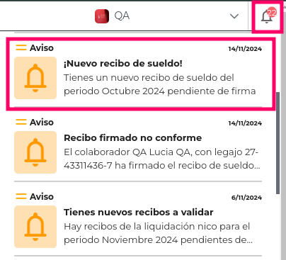 - Desde la campana de notificaciones → Nuevo recibo de sueldo