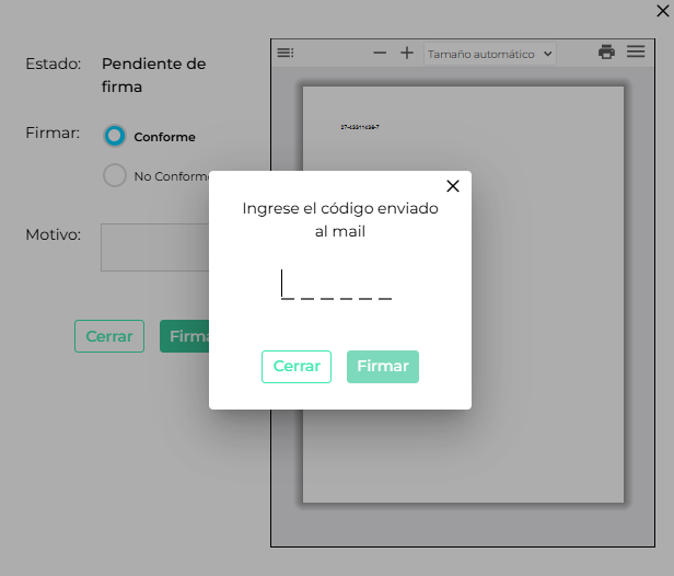 - En caso de firmar NO conforme se deberá ingresar un motivo