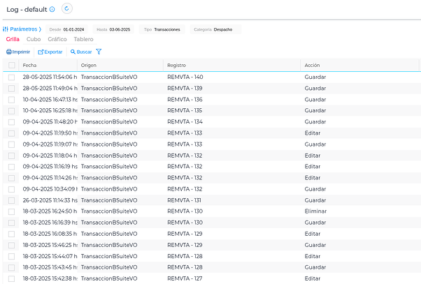 - Auditorías: comprenden la acción de guardar por primera vez, la edición, la finalización, la reactivación y la anulación.