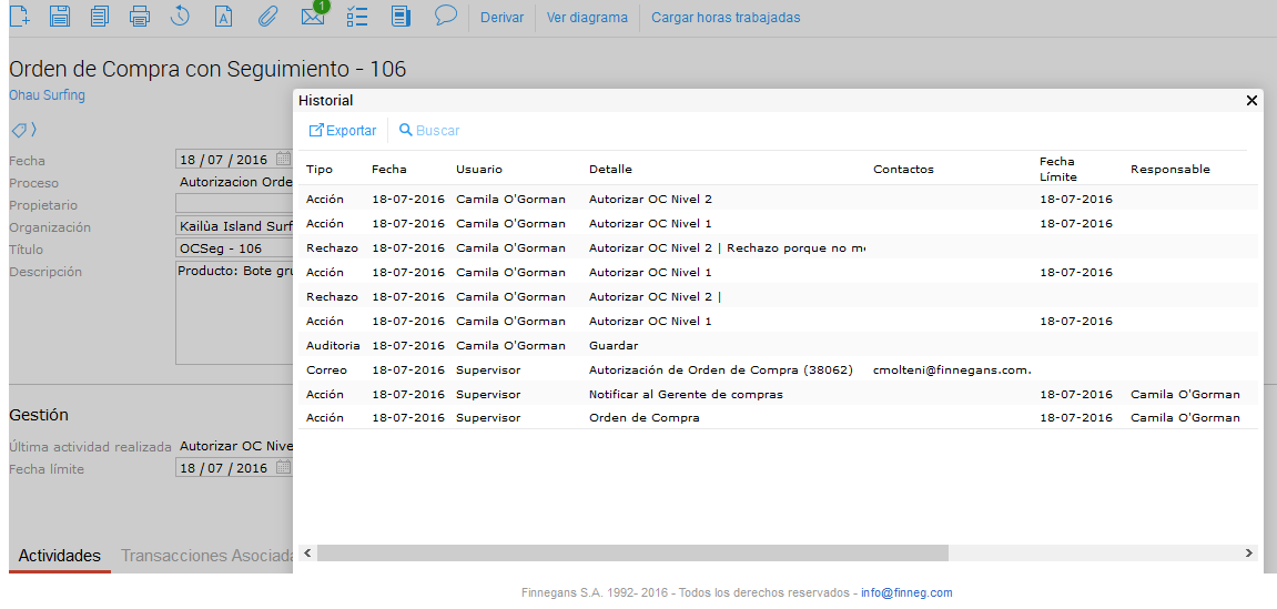 El historial permite visualizar las últimas actualizaciones, modificaciones y cambios realizados desde siempre, sin límite de tiempo.