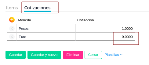 En la solapa de Cotizaciones, que se encuentra abajo a la izquierda, ubicá la moneda extranjera (por ejemplo, USD) y poné el valor de la cotización en 0. Esto es crucial para que el impacto solo se refleje en la moneda principal de la empresa (por ejemplo, ARS).