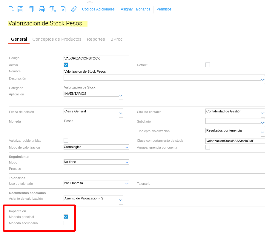 ¿Cómo generar Valorización de Stock en moneda principal y separadamente una Valorización de Stock en moneda secundaria?