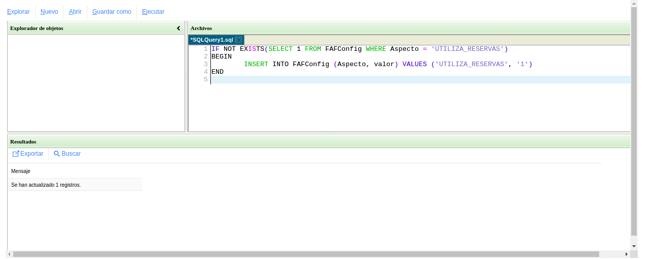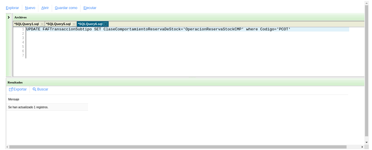 Hacer click en “Ejecutar”. En la solapa “Resultados” se va a visualizar el mensaje “Se han actualizado 1 registros”.