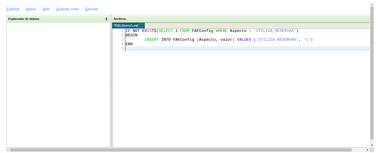 IF NOT EXISTS(SELECT 1 FROM FAFConfig WHERE Aspecto = 'UTILIZA_RESERVAS')