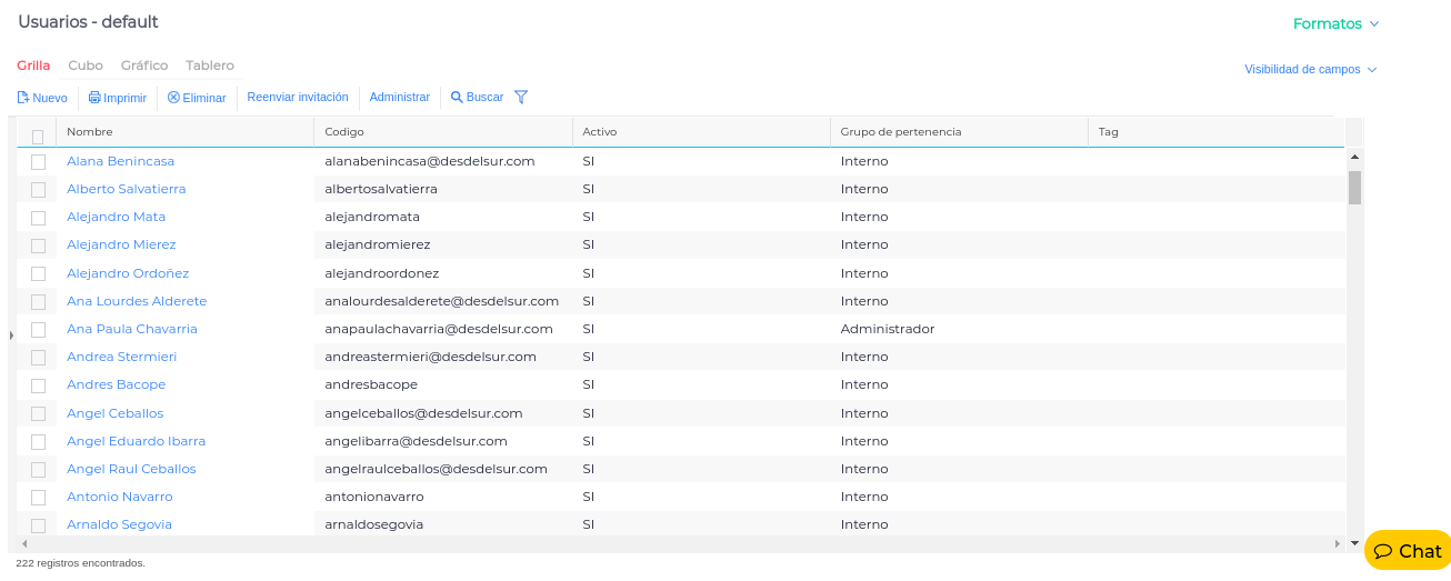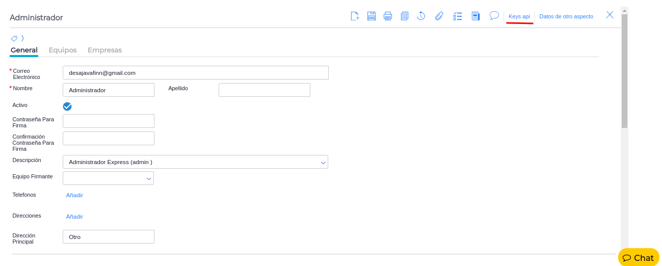 - Verificamos que el usuario que vamos a utilizar para realizar las llamadas tiene las credenciales necesarias para comunicarse con la API. Para esto nos vamos a dirigir a Configuración → General → Usuarios y vamos a seleccionar el usuario.