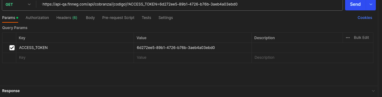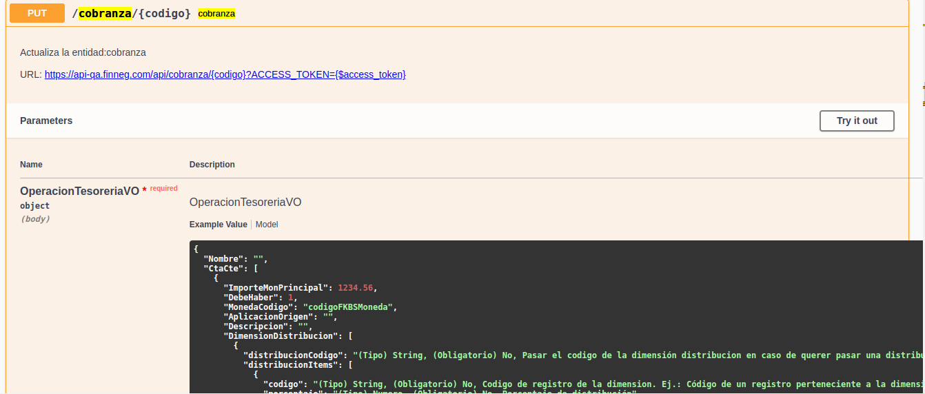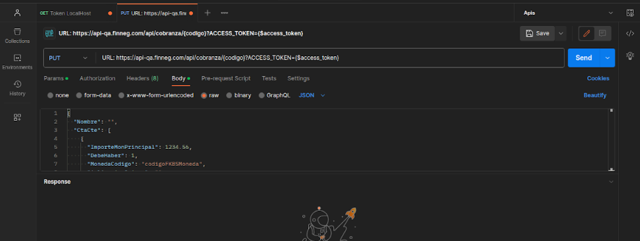 - Una vez obtenido el token, ya podemos utilizarlo para realizar las llamadas a los métodos PUT de una transacción, como es el caso de las Cobranzas.