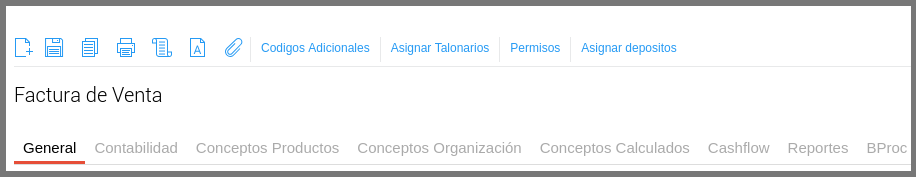 Cargar una nueva Factura de Venta. Se accede desde Menú → Gestión Empresarial → Ventas → Facturas → Factura de Venta → Nuevo