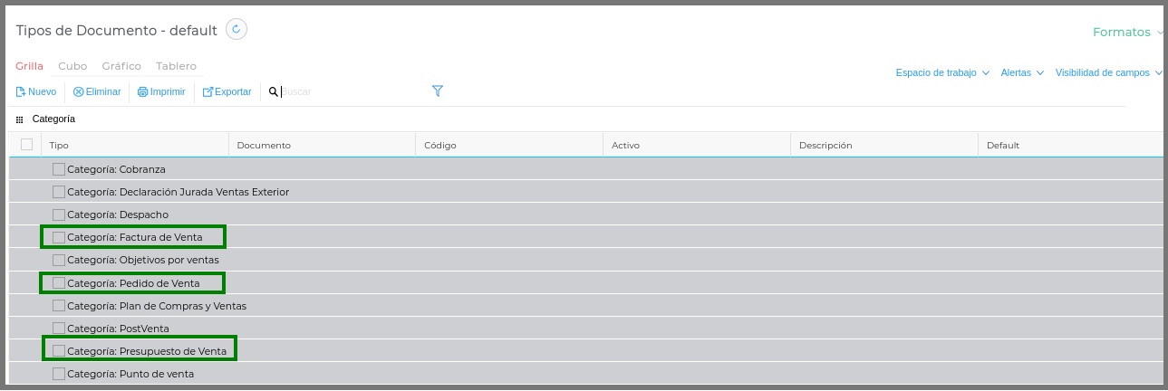 Se accede desde Menú → Configuración → Diseño del espacio de trabajo → Documentos → Tipos de Documento