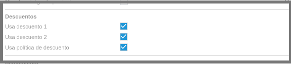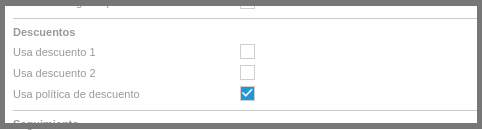 En la sección “Descuentos”, activar la casilla de selección “Usa política de descuento”: