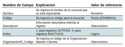 La importación de sucursales se realiza en dos partes. Por un lado, se deben importar las sucursales y por otro, las direcciones de las sucursales.