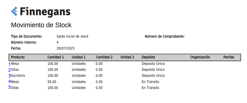 Una vez creada la Operación Saldo Inicial de Stock, se puede previsualizar o imprimir el reporte “Ingreso de Mercadería” para realizar los controles pertinentes.