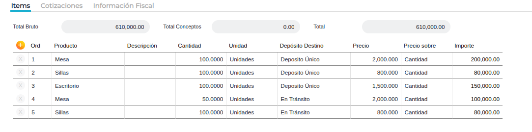 Se puede verificar que el Reporte generado, el orden de los ítems coinciden con el orden en la transacción.