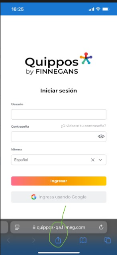 Si al ingresar no aparece un mensaje de sugerencia para instalar Quippos, podrás hacerlo manualmente desde la barra de herramientas del Iphone.