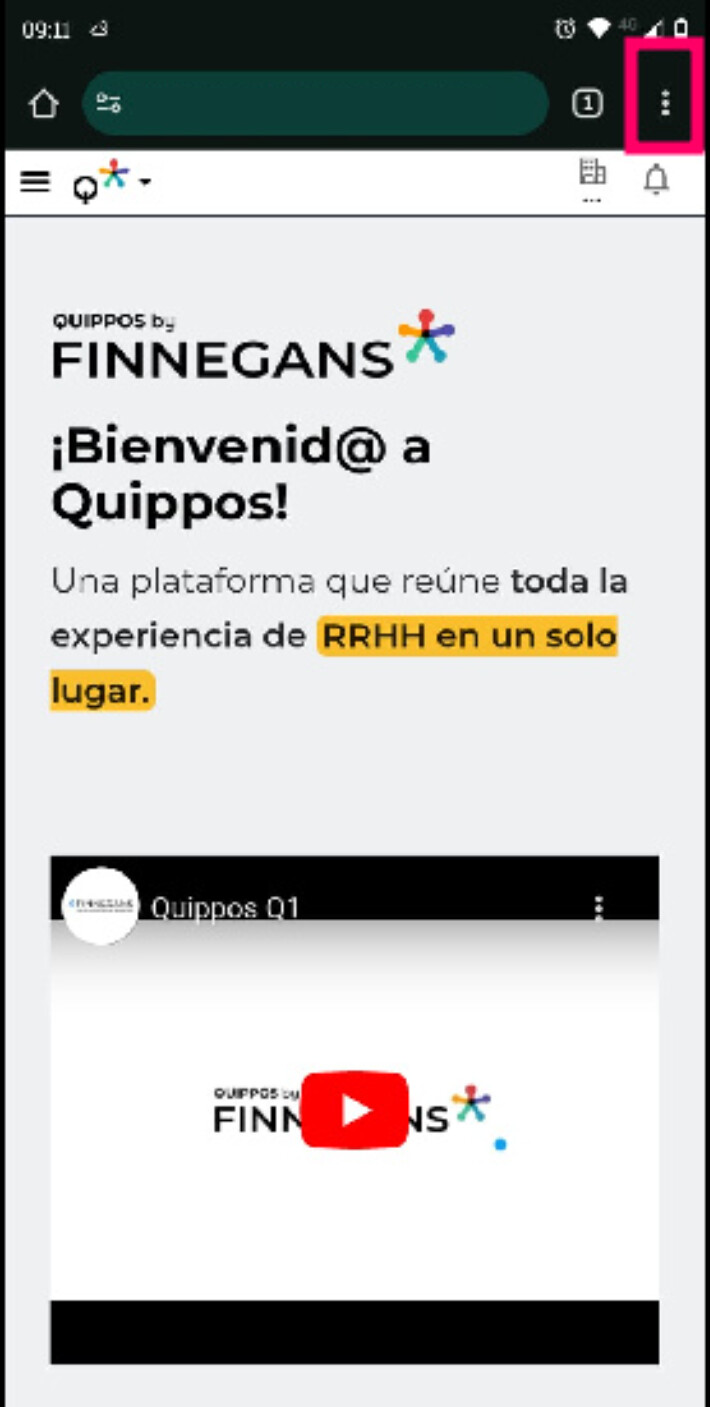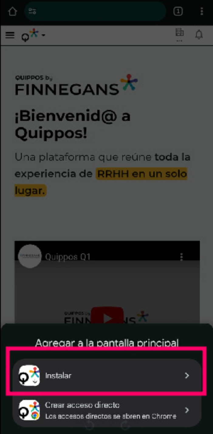 Si al ingresar no aparece un mensaje de sugerencia para instalar Quippos, podrás hacerlo manualmente desde el menú de los tres puntos en Chrome.