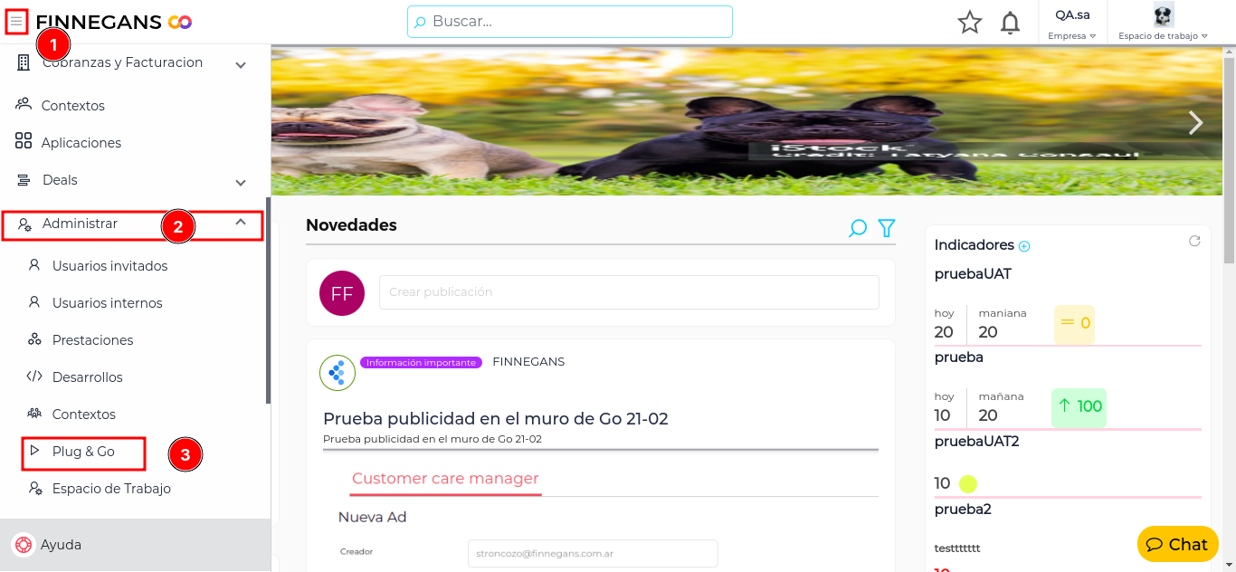 - Nos dirigimos al menú de GO, seleccionamos Administrar y elegimos “Plug and GO”