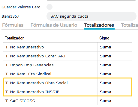 En este paso deben revisar qué totalizadores tiene este concepto y Netear (unicamente si los tienen) los totalizadores T. No Remunerativo INSSJP, T. No Remunerativo Obra Social y T. No Rem. CCT.