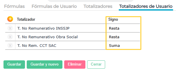 En caso de ya contar con los conceptos configurados y adaptados a los convenios de su base, deben revisar únicamente que los totalizadores sean los correctos, como se indica a continuación.