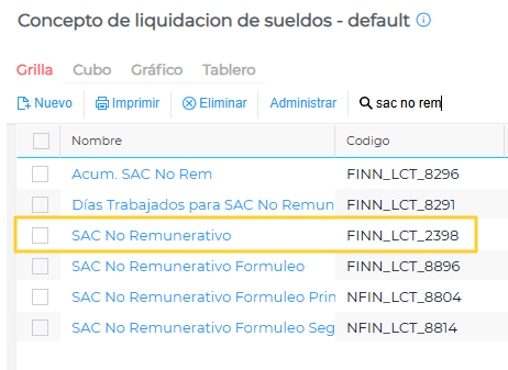 En caso de que no posean un SAC no rem. ya configurado en su base, pueden utilizar el concepto estándar SAC No Remunerativo, haciendo las modificaciones en sus bases imponibles para adaptarlos a los acuerdos de cada CCT.