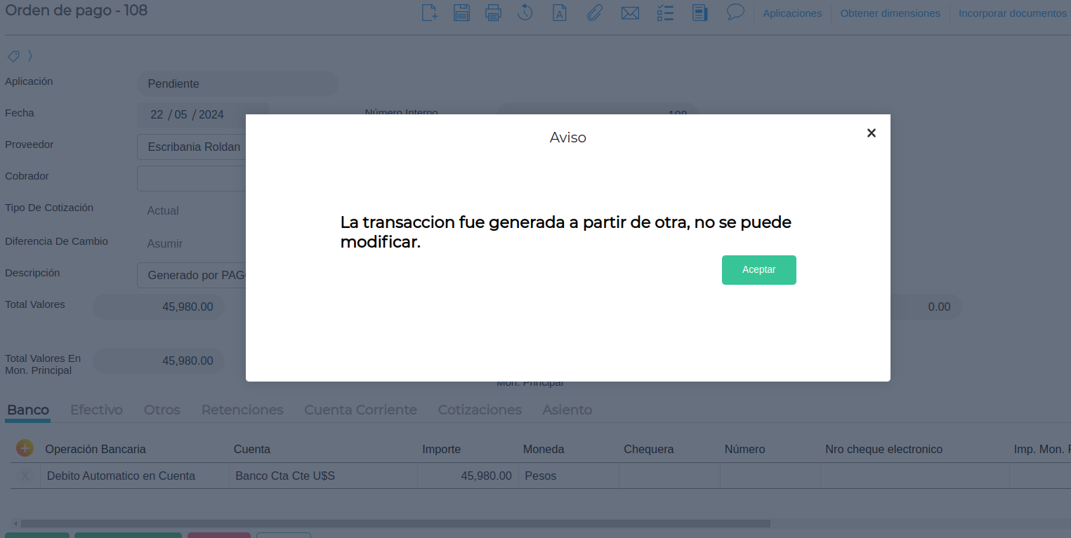 3- Quitar el check de “No permite modificar documento generado”