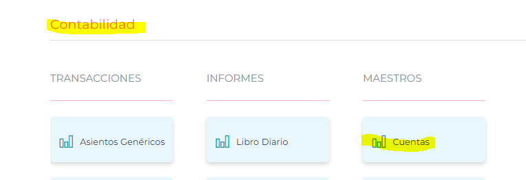 1- Ir a Menu> Gestión empresarial> Contabilidad> Cuentas