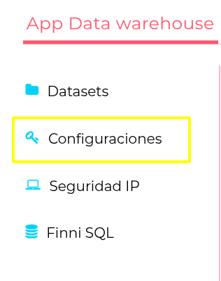 Para acceder a esta información, lo hacemos desde el menú “Configuraciones” dentro de la aplicación Data warehouse.