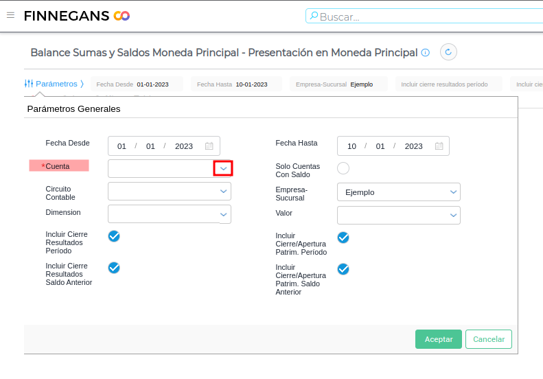 Desplegar las opciones del campo “Cuenta”: