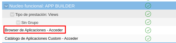 Localiza la prestación “Browser de Aplicaciones - Acceder”.