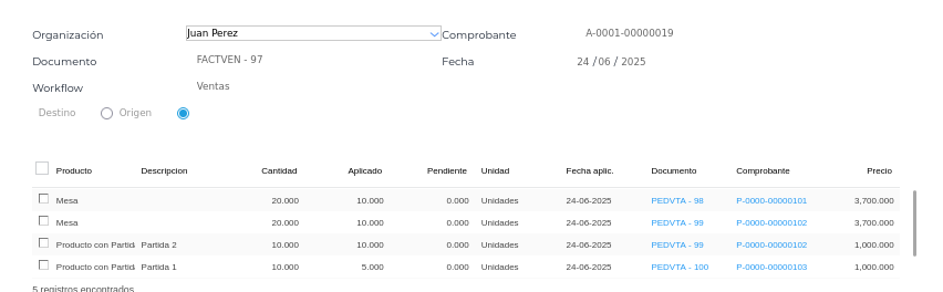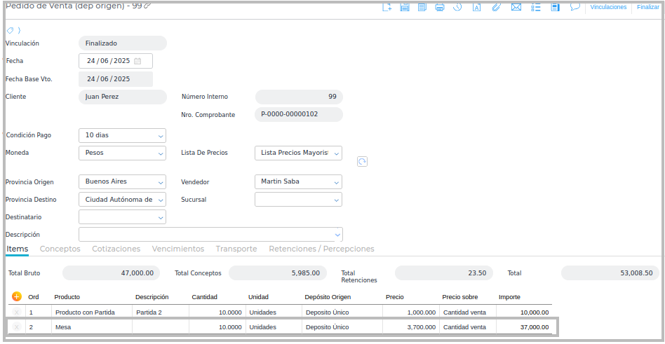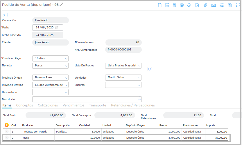 En el caso del producto mesa, el mismo estaba contenido en 2 pedidos de venta, pero contaban con un precio idéntico. en este caso los items se agruparon en uno.