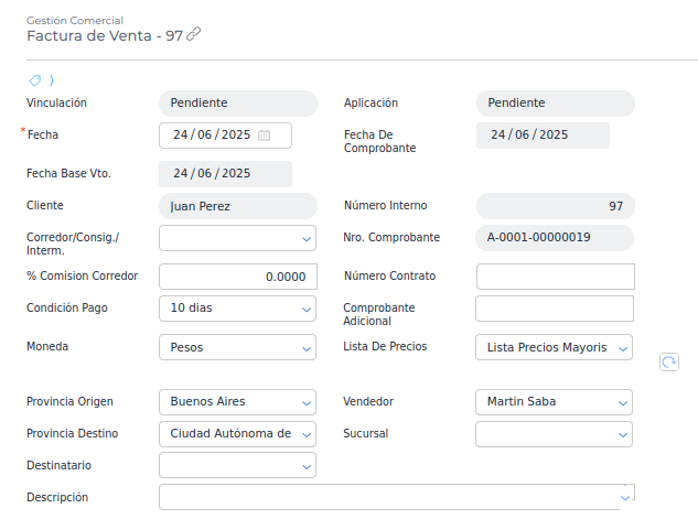 Ir a Menú → Gestión Empresarial → Ventas → Facturas, chequear la factura creada.