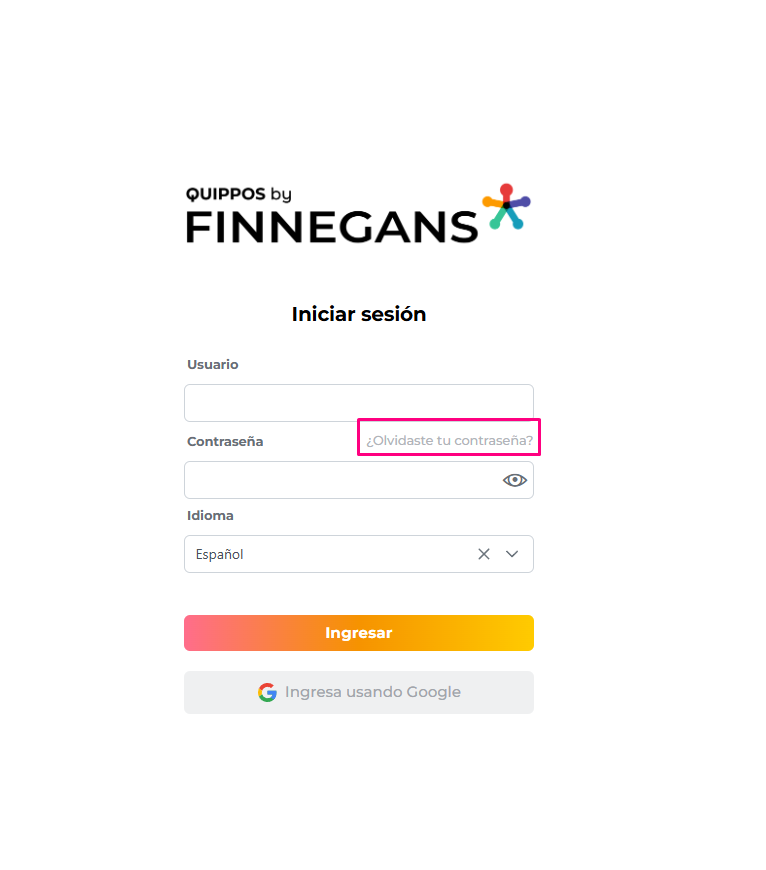 Una vez en la página del Login de Quippos podrás visualizar la opción de ¿olvidaste tu contraseña? Al presionar sobre dicha opción, el sistema te redireccionará a una pantalla donde deberás ingresar el correo electrónico con el que inicias sesión en Quippos