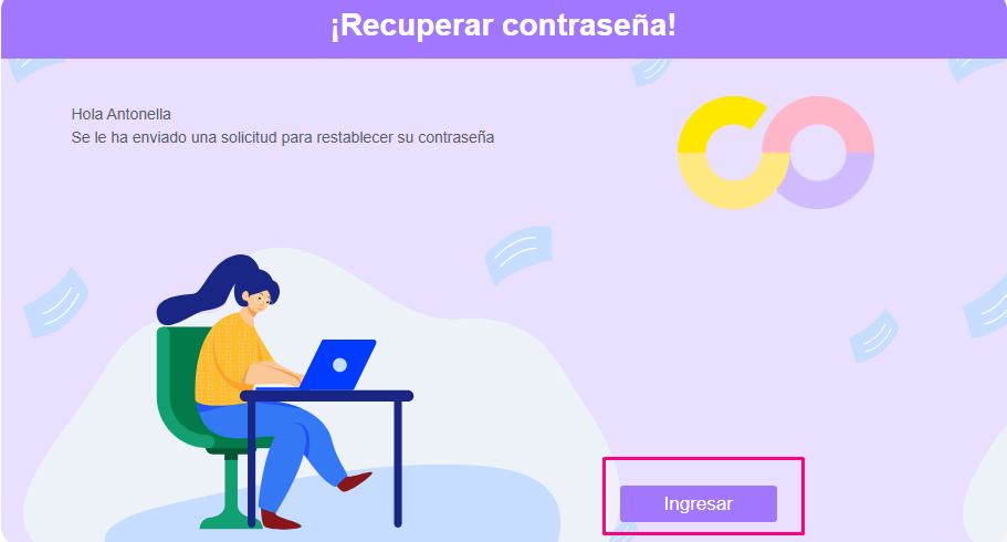 - En el correo electrónico que recibió para restablecer contraseña deberá presionar sobre “el botón” “Ingresar”