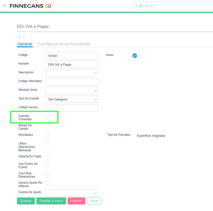 Importante: En el caso de que la cuenta “A PAGAR” deba impactar en cuenta corriente del proveedor AFIP para llevar el control de lo adeudado, ésta debe estar configurada con el tilde Cuentas Corrientes en el maestro de cuentas.