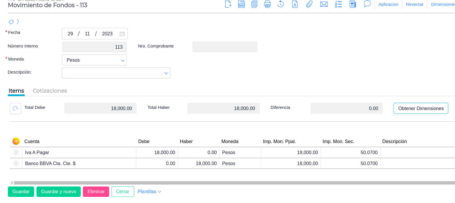 - Para cargar el Movimiento de fondos, ir a Menú → Gestión empresarial → Tesorería → Movimiento de fondos